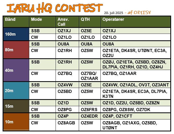 Yderligere oplysninger hos HQ-manager OZ1ISY Søren, hqmanager@edr.dk