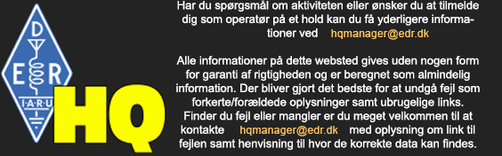 Yderligere oplysninger hos HQ-manager OZ1ISY Søren, hqmanager@edr.dk